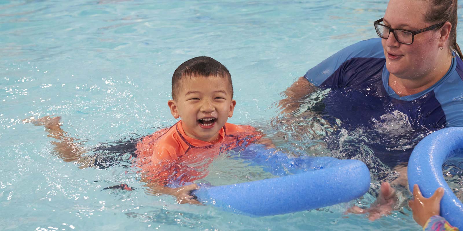 - Safety: We spend a significant amount of time teaching safety skills to equip your child with the tools to be safe in and around the water. The primary skill we teach is what to do when if they fall in off the side of the pool, how to turn around, swim back, reach up, and grab the side of the pool.
